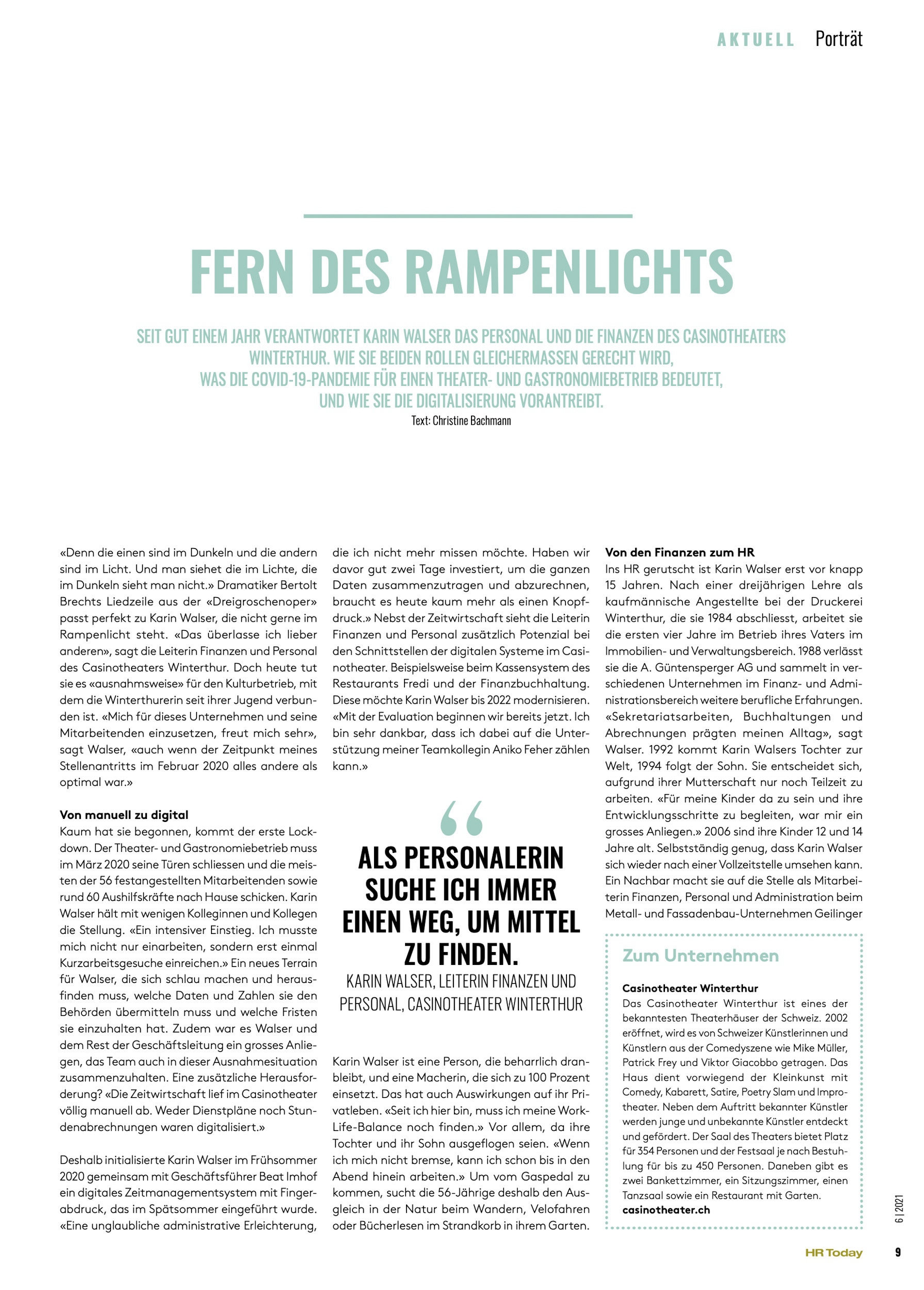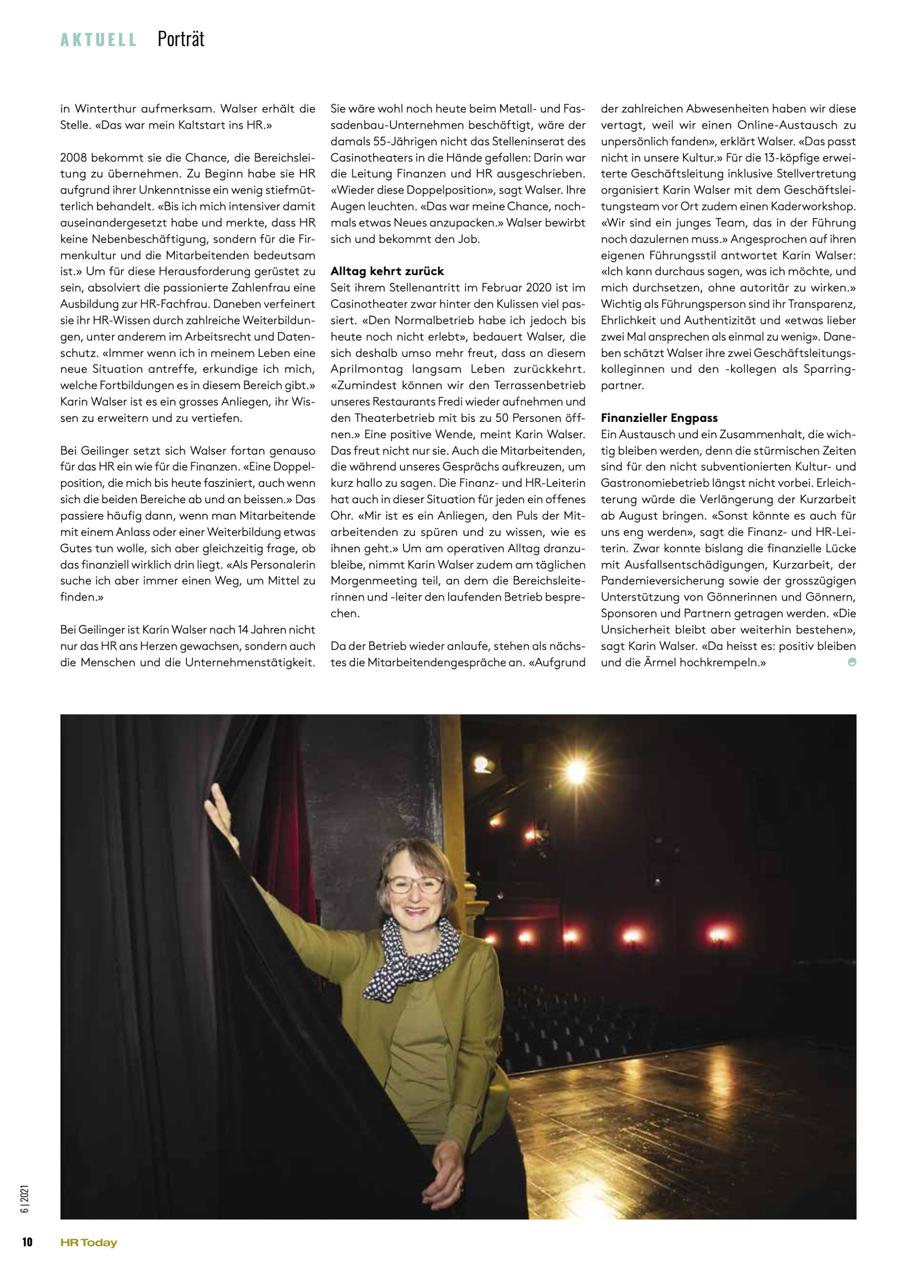 Portraits von Karin Walser, Leiterin Finanzen und Personal, Casinotheater Winterthur