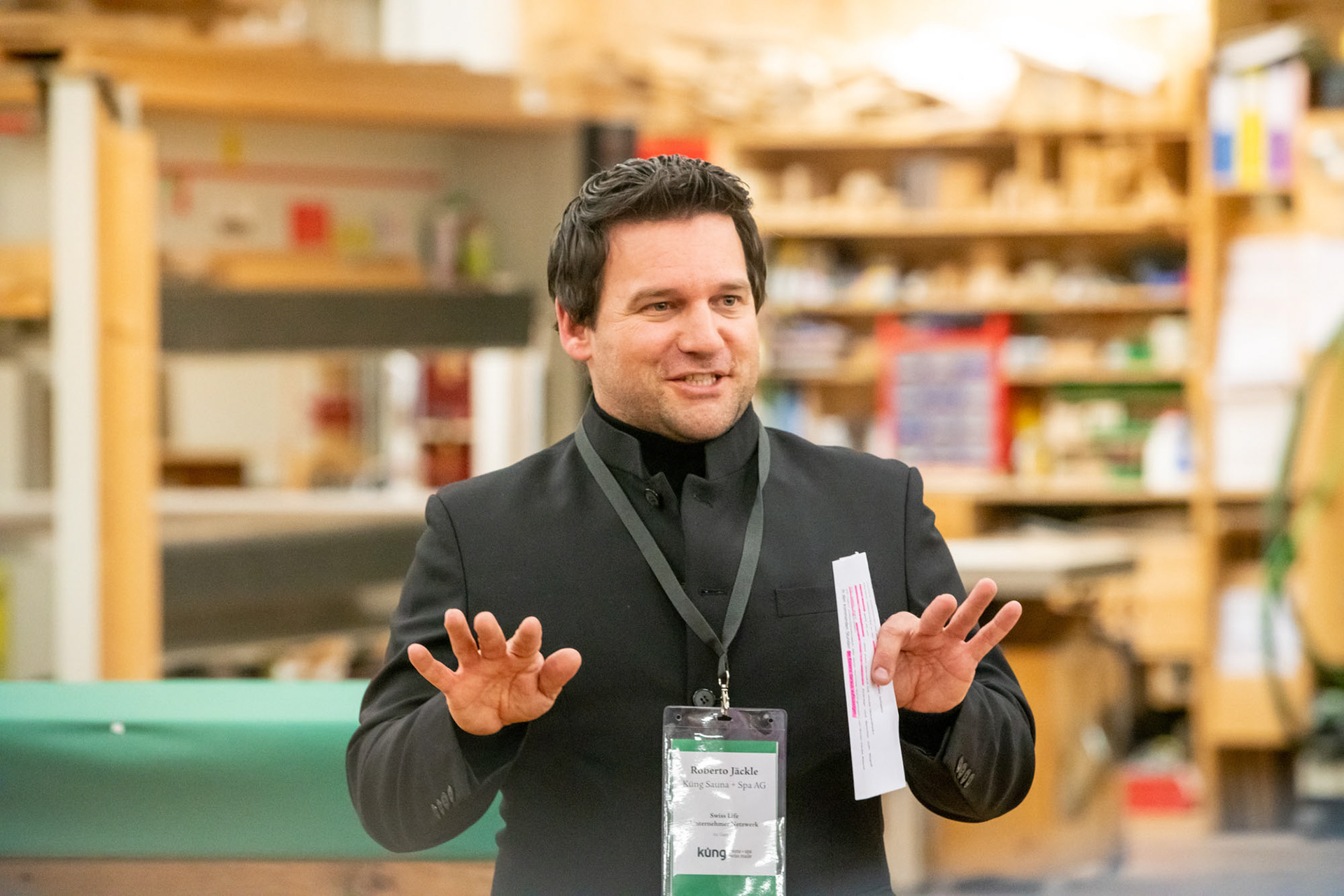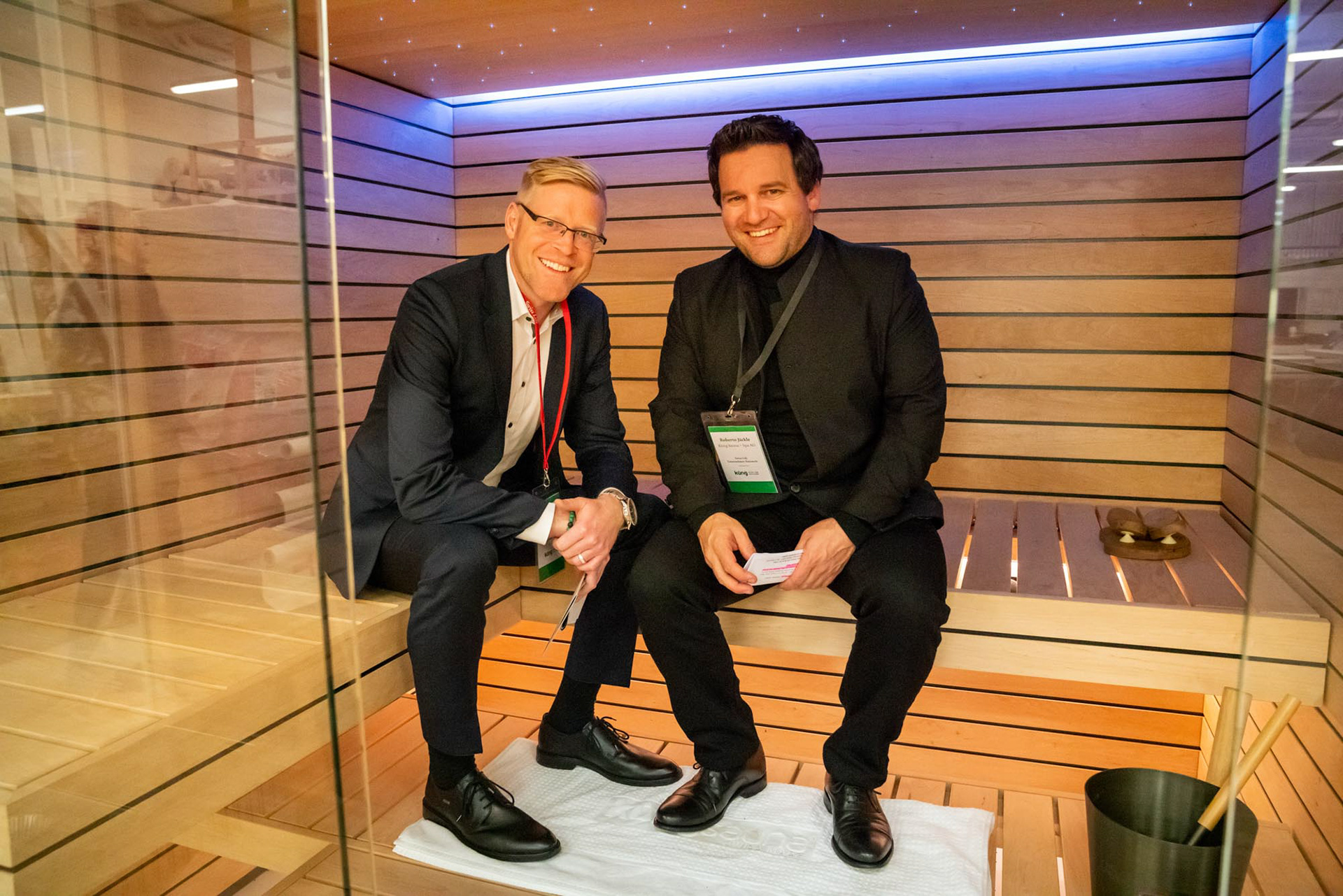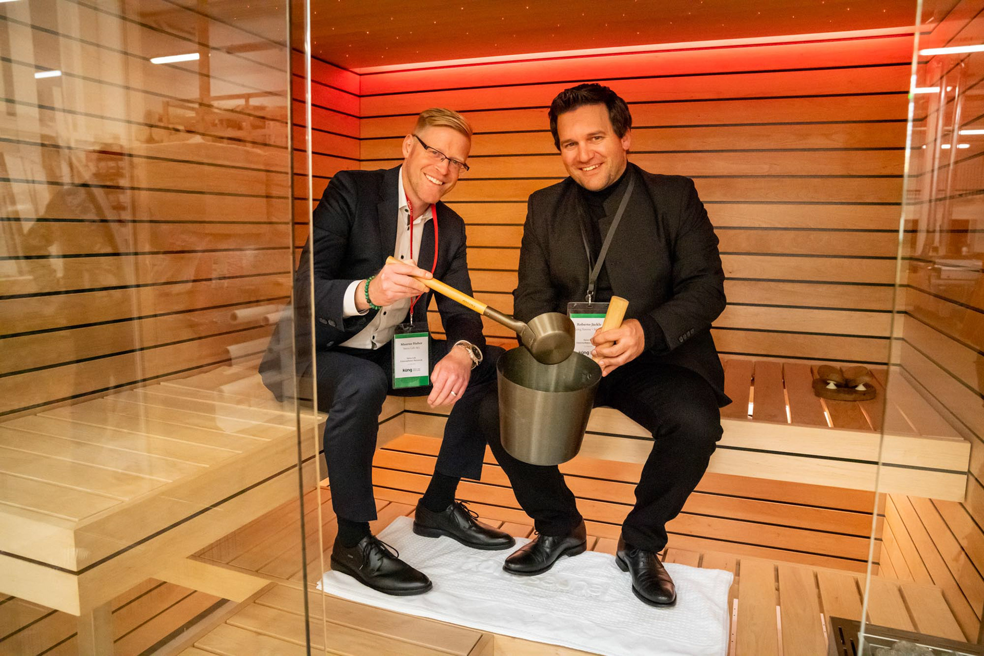 Swiss Life Unternehmer Netzwerk Anlass vom 27. Februar 2020 bei Küng Wellness AG zum Thema: „Raus aus dem Hamsterrad – Zeitinseln im Alltag schaffen“ mit Robert Jäckle und Stefan Poth / Funkenfeuer